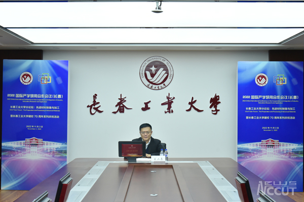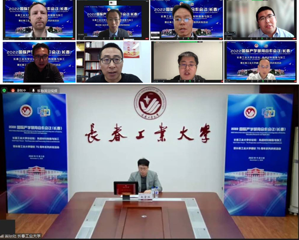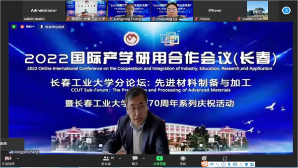 学校承办的“2022国际产学研用合作会议(长春)”分论坛主题是“先进材料制备与加工”,来自德国埃尔朗根纽伦堡大学、澳大利亚皇家墨尔本大学、美国圣约翰大学、德克萨斯理工大学的4名外国专家以及来自清华大学、北京大学、天津大学、中国科学院长春应用化学研究所的4位学者分别在大会上作主旨发言。他们就柔性机器人的计算多体系统动力学及最优控制、轻金属及其它材料的表面工程、用于各类癌症治疗的小分子Gankyrin结合剂的开发、细胞力学与动脉粥样硬化、基于超材料与超表面的MEMS器件与微系统、光催化反应:从分子构建到活细胞生物正交化学工具、铜基纳米晶-非晶多层膜材料形貌调控与力学响应研究、可注射合成聚肽水凝胶局部传输系统用于肿瘤免疫治疗等8个研究方向作专题报告。