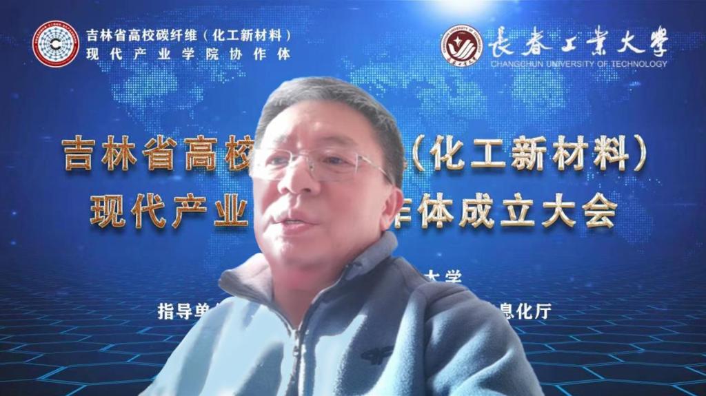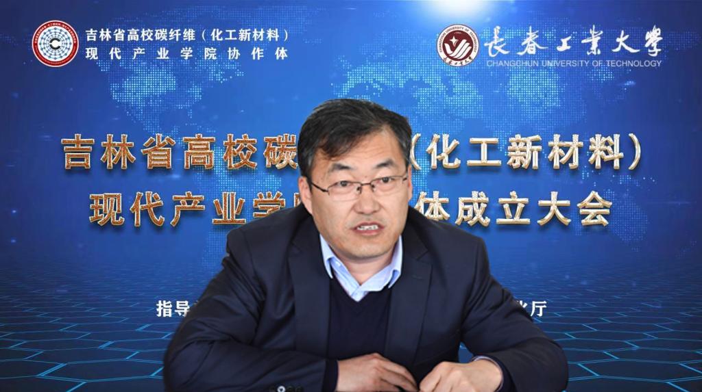 吉林省工业和信息化厅副厅长宋晓辉宣布“吉林省高校碳纤维(化工新材料)现代产业学院协作体”正式成立,并宣读了协作体第一届理事会和第一届专家指导委员会成员名单。