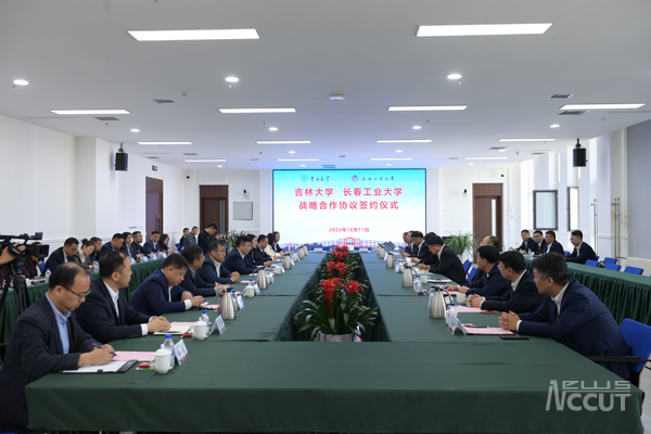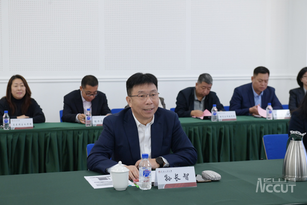 孙长智主持会议并致欢迎辞,对吉林大学一行表示热烈地欢迎和诚挚地感谢,他表示,吉林大学和长春工大有着深远而悠久的历史渊源,两校自建校之日起,就共同承载着党和国家的希望,与时代同呼吸、与民族共命运。两校间始终保持着广泛而密切的学术联系,结下了深厚友谊,为服务国家战略和区域经济社会发展提供了有力保障。此次战略合作是两校深入贯彻落实习近平总书记关于教育的重要论述和在新时代推动东北全面振兴座谈会上的重要讲话精神的一项重要举措,长春工大将以此次合作为契机,进一步学习借鉴吉林大学现代化的治理体系,提升治理能力,与吉林大学一道,共同秉持“优势互补、平等互利、合作共赢、以优培强、协同创新、高质高效”的原则,坚持实事求是、需求导向、精诚合作,深度推进师资共用、学科共建、人才共育、科研共创、资源共享,深化交流合作,共同提高“双一流”和“双特色”建设水平,实现内涵式高质量发展。