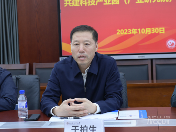 于柏生从长春新区产业园的布局规划、配套设施、政策优惠、发展现状等方面进行介绍。他表示,长春新区产业园毗邻学校北湖校区,能够发挥资源优势,为学校科技成果提供产业孵化空间,希望通过本次洽谈,实施精准谋划,发挥高校科技创新优势,激发高校教师创新创业热情,积极到产业园区创办企业,促进区域产业高质量发展。