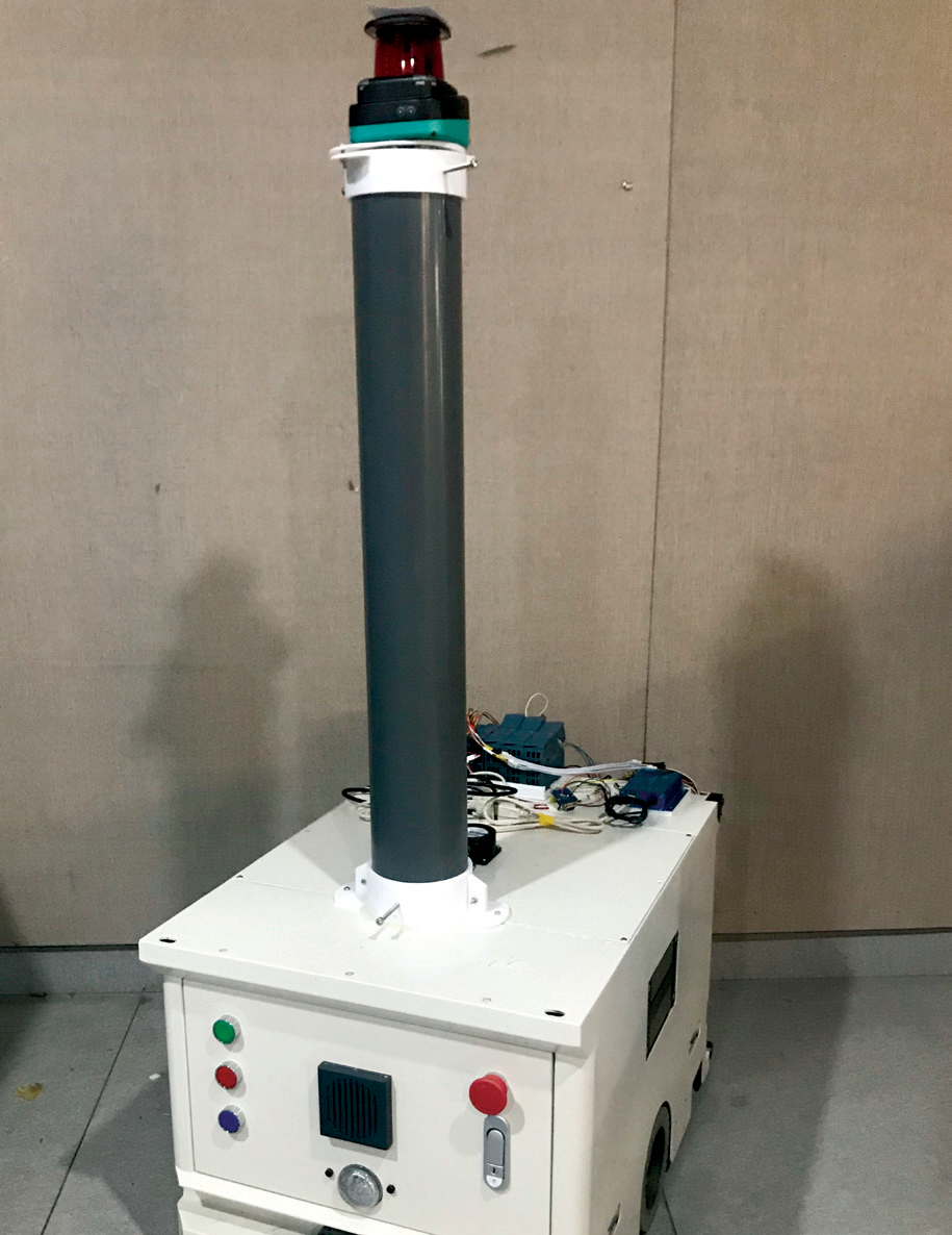 项目团队自主研发多种类型的自动导 引 运 输 车(Automated Guided Vehicle, AGV),能够满足工厂的安全等级,与PLC、调度系统以及机器人进行实时通讯。该产品可广泛应用于汽车制造、包装机械等自动化生产和仓储体系。研发的 AGV 系统支持缓冲区管理及区域搬运等业务场景,可对接 MES/ 上位机系统等上层系统 ;系统支持多种呼叫方式,满足多种厂内物流搬运需求。可依据工厂布局进行路径规划,自动避障,实时监控及信息管理等功能,满足仓库到产线、产线到产线、产线到仓库的多种搬运需求。AGV 的导航精度在 mm 级,停止精度为 ±10mm,朝向精度为 1 度。AGV 在电量不足时进行报警并可自动定点充电。团队已开发出磁条导引、惯性导引、激光导引三种类型的 AGV 样机,掌握了核心研发技术,获授权国家发明专利 3 件。近年来我国自动化物流装备市场规模快速增长,预计 2022 年将突破 2600 亿元,AGV 产品具有良好的市场前景。