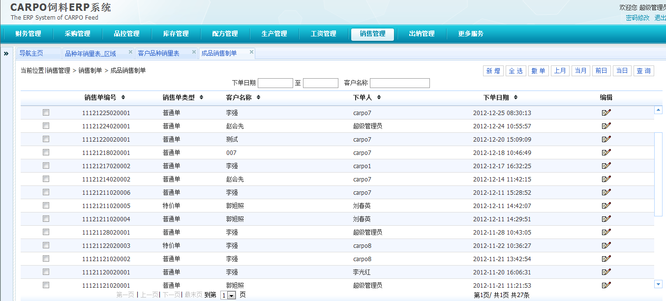 CCUT-ERP系统,是专业针对生产制造企业开发的软件系统。该系统遵循国际上通行的ERP理念,通过严格监控企业的采购、生产、销售、库存及财务,达到改进业务流程、完善供需链、提高企业管理水平,增加企业利润的目的。此外,系统实现了业务数据与财务数据的完美结合,以及客户管理、供应商管理、质量管理等业务模块,以满足企业的多方位需要。系统为企业决策者提供了方便的辅助分析功能,可以通过阶段性决策分析,直观的感受企业各管理环节的细微变化,及时掌握企业的运营状况,以便适时做出改进和调整。技术特点(技术指标)1、能规范企业的进销存管理流程,减少管理漏洞;2、实现业务数据到财务数据的无缝对接,自动转凭证;3、企业内部员工的全面信息管理,企业管理者十分清楚企业当前的人员组成情况;4、科学有效管理企业的销售员和经销商,保证企业利润持续增长;5、自动核算生产部门的工人工资;6、提供老板桌面功能,帮助企业管理者更科学便捷的运营企业。市场前景目前,虽然国际和国内各种ERP产品比较多,但是确实没有专门针对中国饲料企业生产、管理和运营情况所研发的ERP产品,而由于饲料行业存在整体人员素质有限、知识结构较低的现状,确实需要一款贴近中国饲料企业的管理软件,来提高饲料企业的利润(通过节省人力、提高管理水平、自动统计、改善企业宣传形象等方式和方法)。综上,本项目具有广阔的市场前景。效益分析饲料企业ERP平台按照不同功能模块,平均每套售价应该在6万左右,目前国内有饲料企业4000多家,15%拥有分厂,按一年10家饲料企业使用该平台,经济效益在60万/年左右。吉林省是农业和畜牧业大省,饲料企业众多,通过推广饲料企业ERP系统,可以全面提高省内饲料企业的管理水平,为推动吉林省的畜牧业发展起到重要的作用。综上,本系统具有良好的社会效益与经济效益。对合作者要求你想通过信息化管理来提高企业管理水平,提高企业利润的饲料生产企业。