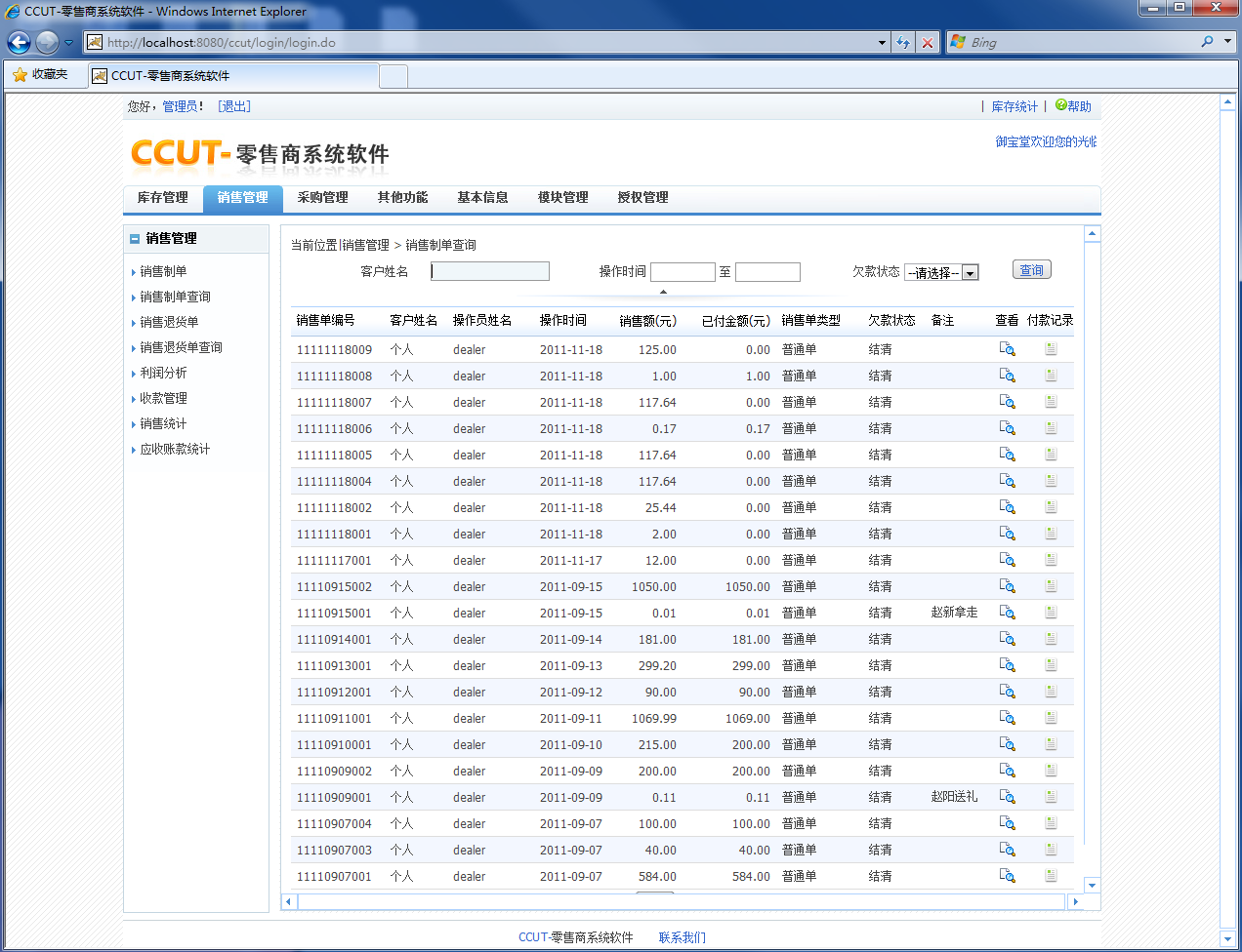 CCUT-零售商系统是专业针对零售业业务特点而开发,集成了零售行业多种业务功能的,集商品的进、销、存为一体的综合性管理软件。能够有效辅助企业解决业务管理、分销管理、存货管理、营销计划的执行和监控、统计信息的收集等方面的业务问题。系统包括销售、订单、进货、库存和账款管理。包括销售开单、采购、入库、出库、盘点、退货、预警、公告、统计、权限控制等功能模块,互联网、局域网皆可使用。技术特点(技术指标)1、 能规范零售企业的进销存管理流程,减少管理漏洞;2、 科学有效管理企业的成本和利润,时刻查看企业利润情况。3、 整合库存、销售、采购管理,产业管理链条一体化:该系统整合库存、销售、采购管理三大环节,将库存、销售、采购管理产业链一体化,进行数据统计和盘点;4、 操作简单方便、体现人性化设计:系统功能符合行业实际业务习惯,界面简捷、操作方便,具有良好的可用性和可操作性,操作员无须懂财会及电脑专业知识,可自学上手,一学就会;5、 智能化统计分析、助力管理决策:系统具备的强大的数据统计和分析功能,数据形式化转换成可视化,随时导出、打印,助力管理决策。市场前景目前,虽然国际和国内各种软件产品比较多,但是专门针对零售企业企业管理和运营情况所研发的管理软件产品较少,市场确实需要一款贴近零售企业特点的管理软件,来提高零售企业的管理水平。综上,本项目具有广阔的市场前景。效益分析CCUT-客户关系系统软件平均每套售价应该在1万左右,按一年50家零售企业使用该软件,经济效益在50万/年左右。零售企业通过使用零售商系统软件实现提高采购、库存、销售一体化管理,自动实时核算成本、利润的效果。综上,本系统具有良好的社会效益与经济效益。对合作者要求你想通过信息化零售商管理软件来提高企业企业管理水平,提高企业利润的零售型企业。