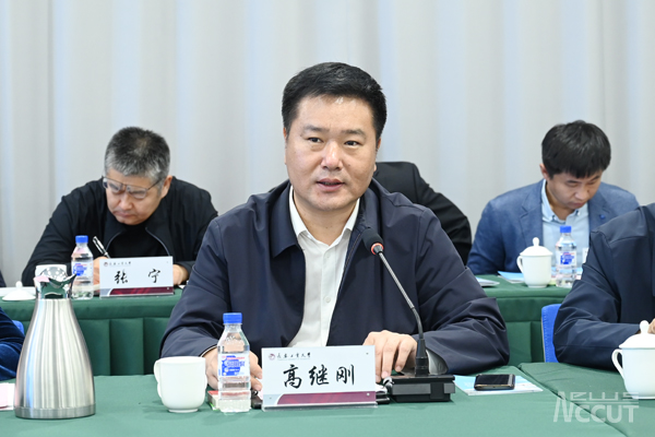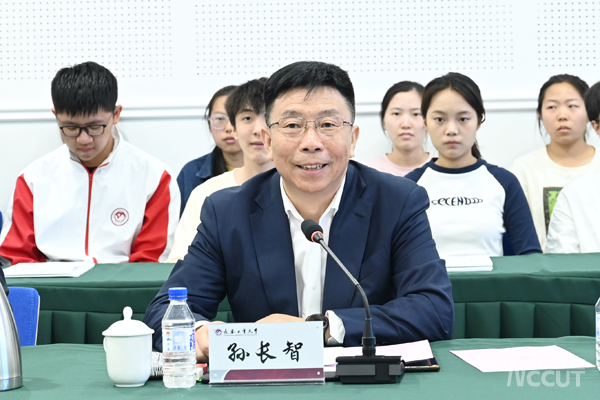 孙长智在致辞中对李晓杰一行来校调研表示热烈欢迎,并简要介绍了学校的基本情况,回顾了双方合作共建的历程。孙长智指出,学校深入贯彻落实习近平总书记关于新时代推动东北全面振兴和加快建设教育强国的重要讲话精神,积极响应景俊海书记“创业奋斗 ‘就’在吉林”的号召,充分发挥学校教育、科技、人才资源集聚优势和社会服务的成功经验,持续深度融入地方、服务地方,千方百计促进毕业生留吉高质量充分就业,为吉林全面振兴全方位振兴贡献了工大力量。工大与松原,虽然地处两城,但一直心意相通、情谊相连,始终合作紧密、成果丰硕。希望双方进一步加强产学研协同创新,推进科技成果转化,走好产教融合、城校共生的发展之路,各扬所长、强强联合,优势互补、互利共赢,促进双方合作不断跨上新台阶、迈向新阶段,为我省全面振兴率先实现新突破做出新的更大的贡献。