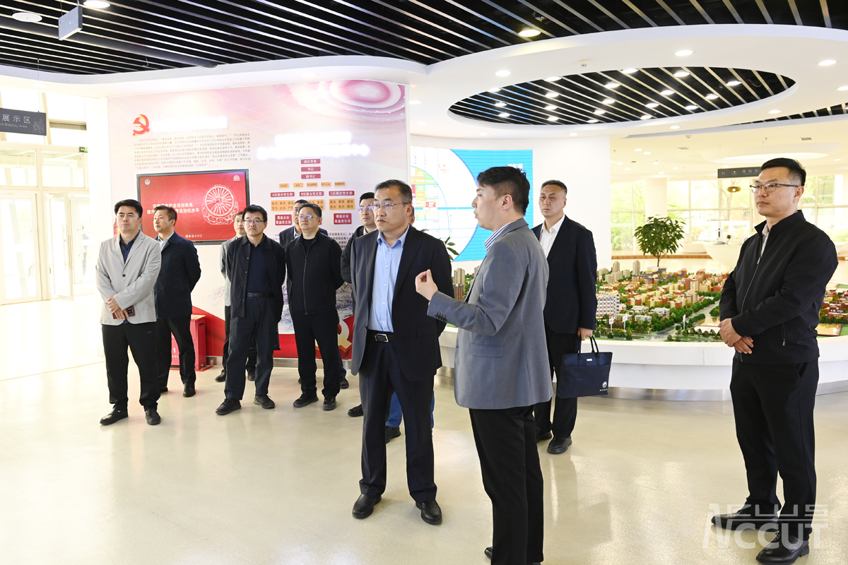 张明耀一行在北湖科技园执行董事任靖的陪同下参观科技园展厅,在参观过程中,副总经理李唐详细介绍企业发展历程、建设规模、业务领域、产品研发等情况。